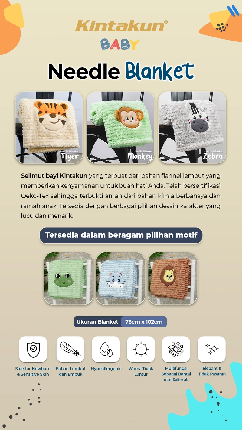 Kintakun Baby Selimut Bayi Needle Blanket Bulu Karakter Hewan 76x102 76 x 102 cm TIGER